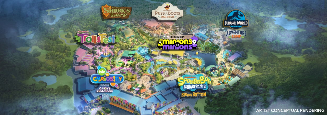El Universal Kids Resort contará con siete tierras temáticas inspiradas en personajes y franquicias icónicas de DreamWorks, Illumination y Nickelodeon. Cada zona ofrecerá experiencias interactivas, juegos, encuentros con personajes y espacios pensados para fomentar la creatividad y el juego libre.